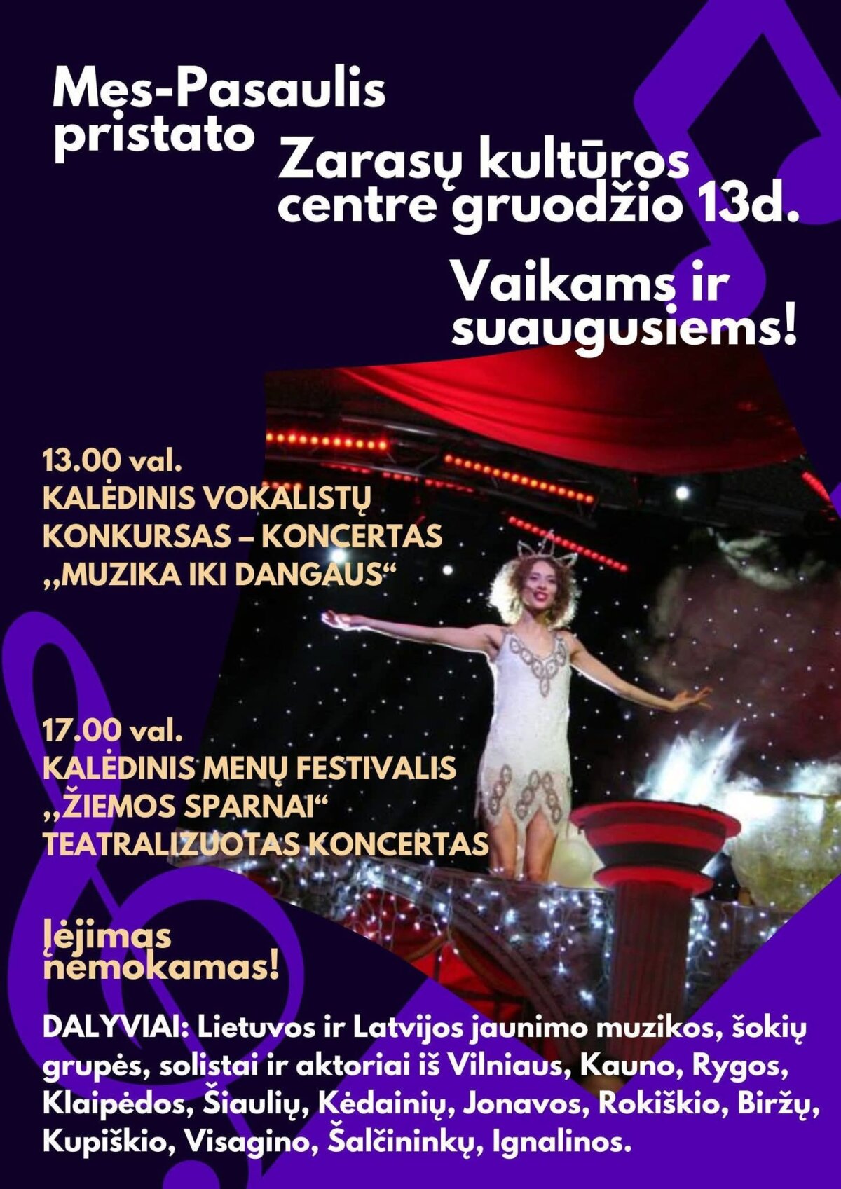 2025 m. gruodžio 13 d. vyko XXV respublikinis vaikų ir jaunimo muzikos projekto „Mes-Pasaulis“ Respublikinis vokalistų konkursas „Muzika iki dangaus“ Zarasų kultūros centre.