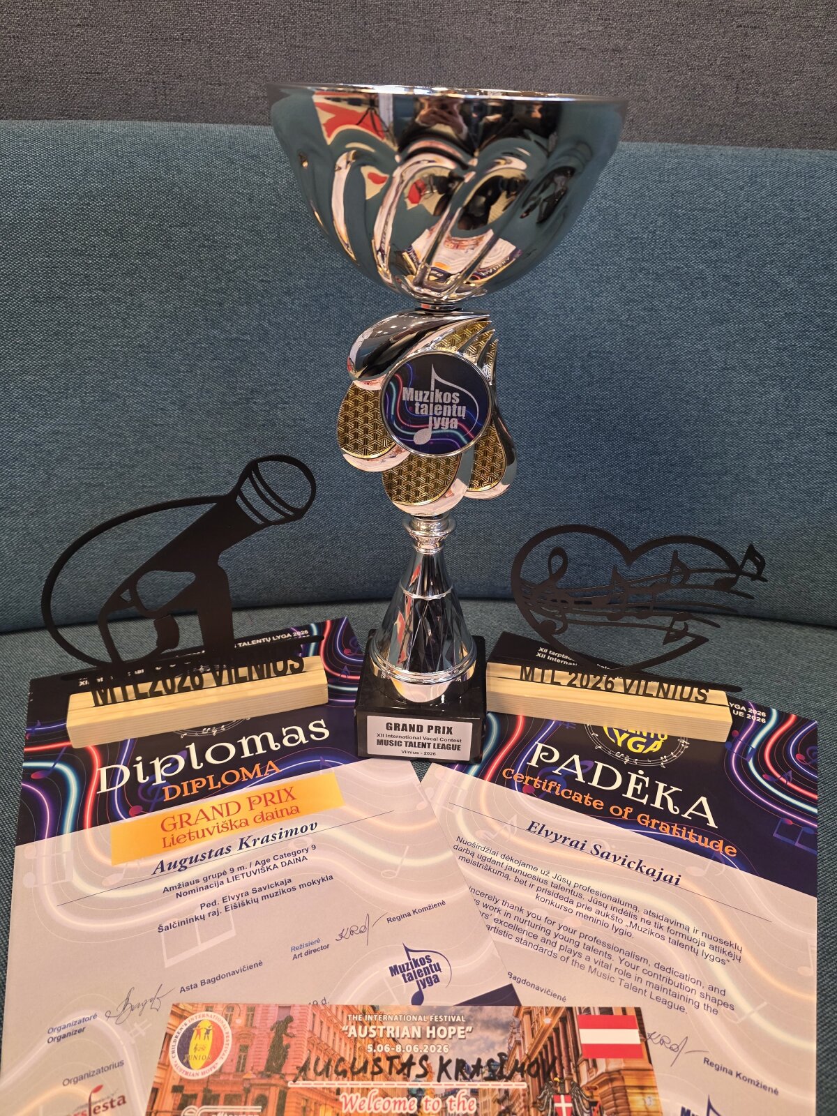 Jungtinėje 9-11 metų amžiaus kategorijoje Augustas tapo lietuviškos dainos GRAND PRIX NUGALĖTOJU bei gavo kvietimą į Austriją.